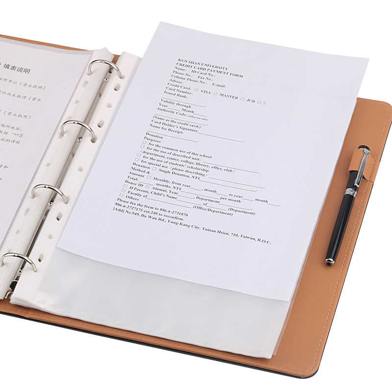 A4软皮面活页可拆卸资料册文件夹文件袋试卷文件装订整理耐用防水