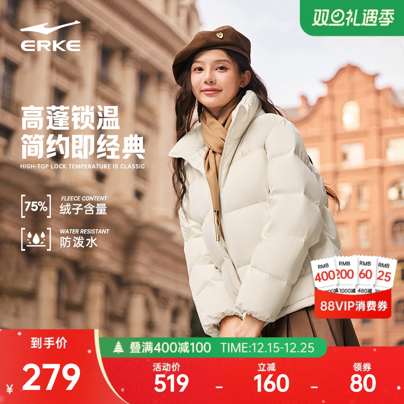 鸿星尔克羽绒服女冬季新款女士三防好看短款面包棉服棉袄外套女款