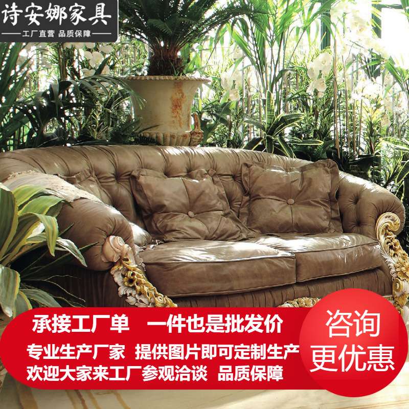法式家具 欧式沙发组合 客厅 奢华 新古典法式皮艺雕花实木沙发