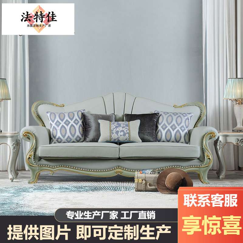 欧式雕花沙发 客厅家具 实木布艺三人位沙发 新古典皮艺沙发组合