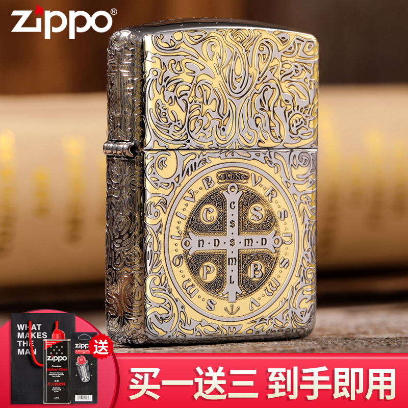 zippo煤油打火机正版防风金银双色康斯坦丁十字架男士礼品生日zp