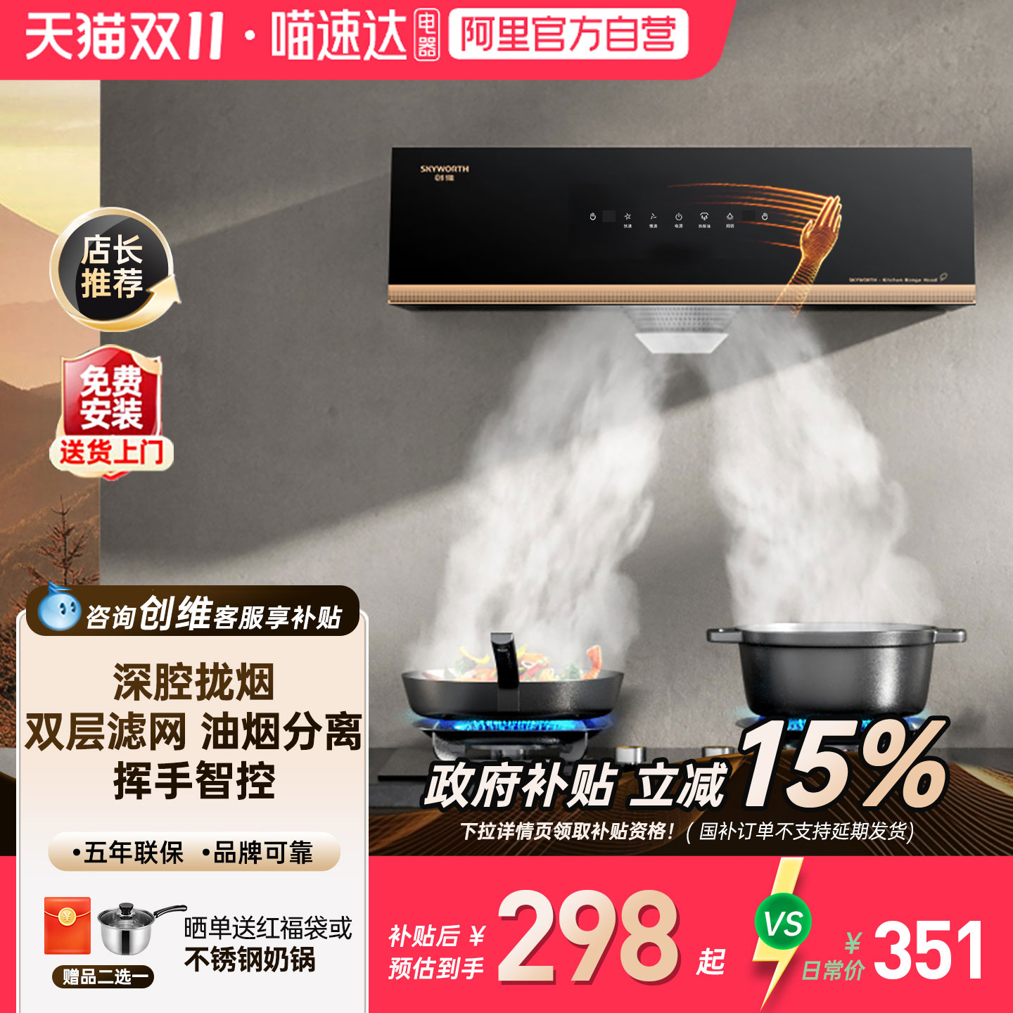 帅康官旗新品侧吸变频抽油烟机家用厨房大吸力油烟机以旧换新补贴