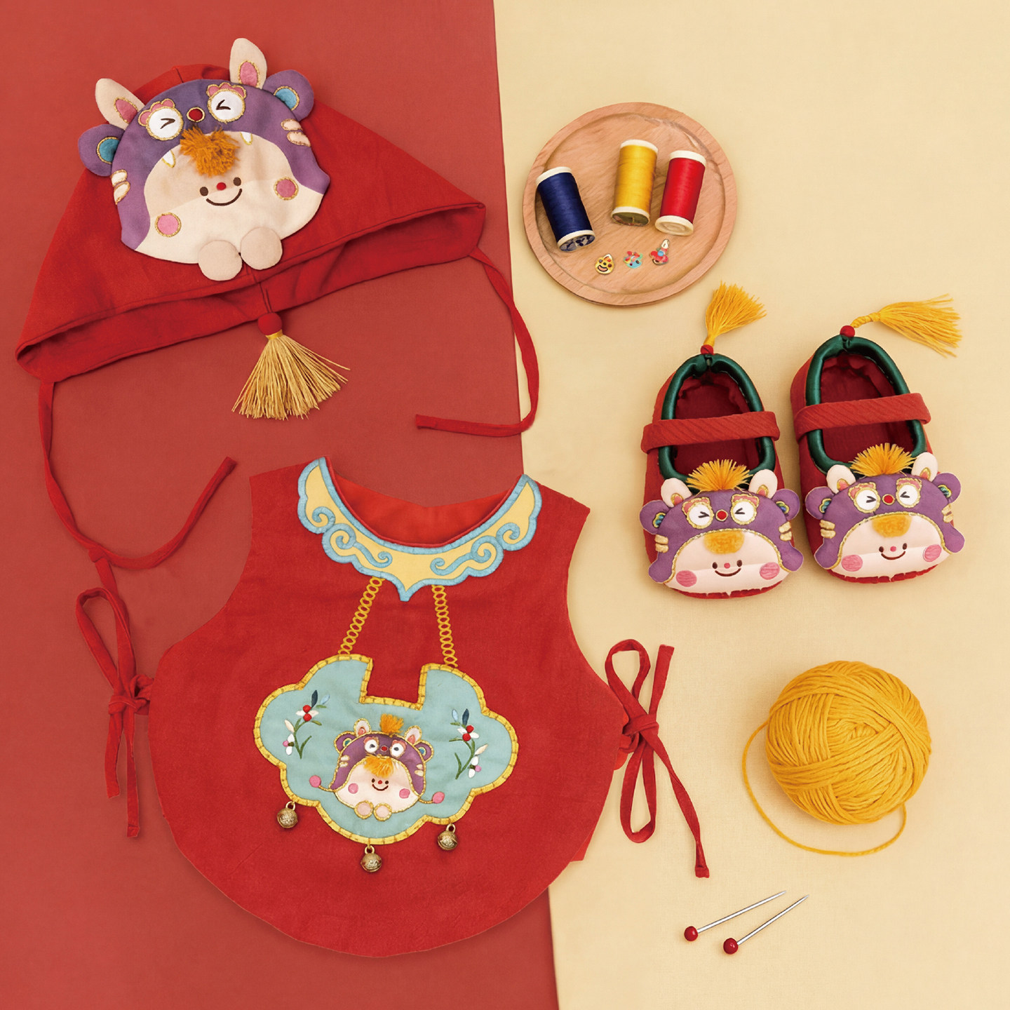 哈尼手工马年虎头鞋diy刺绣婴儿肚兜宝宝背心衣服用品鞋帽周岁礼