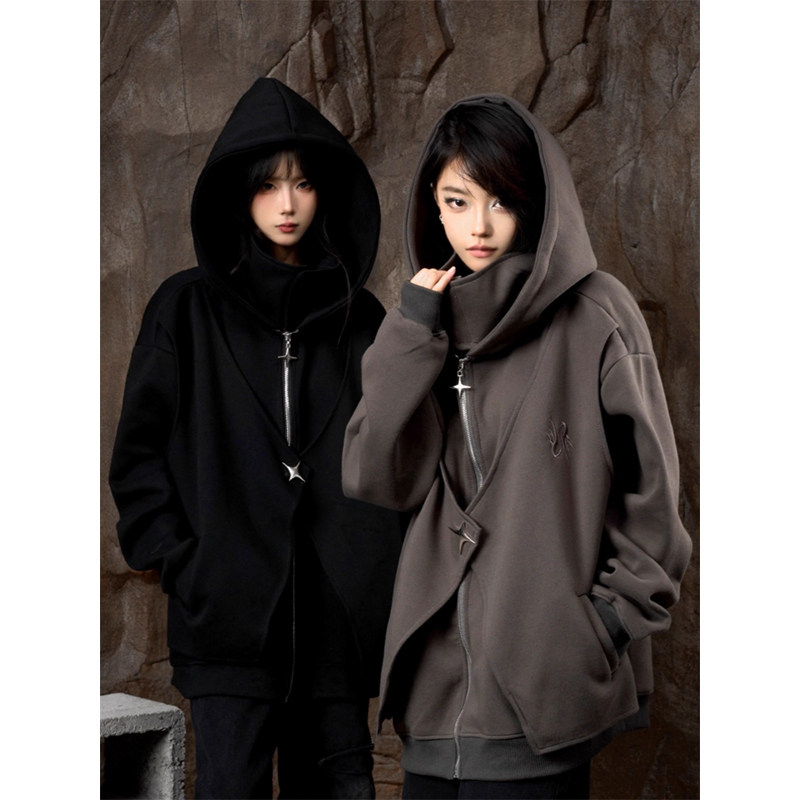 吉业重工秋冬新款重磅刺绣高领假两件连帽卫衣男女宽松巫师帽上衣