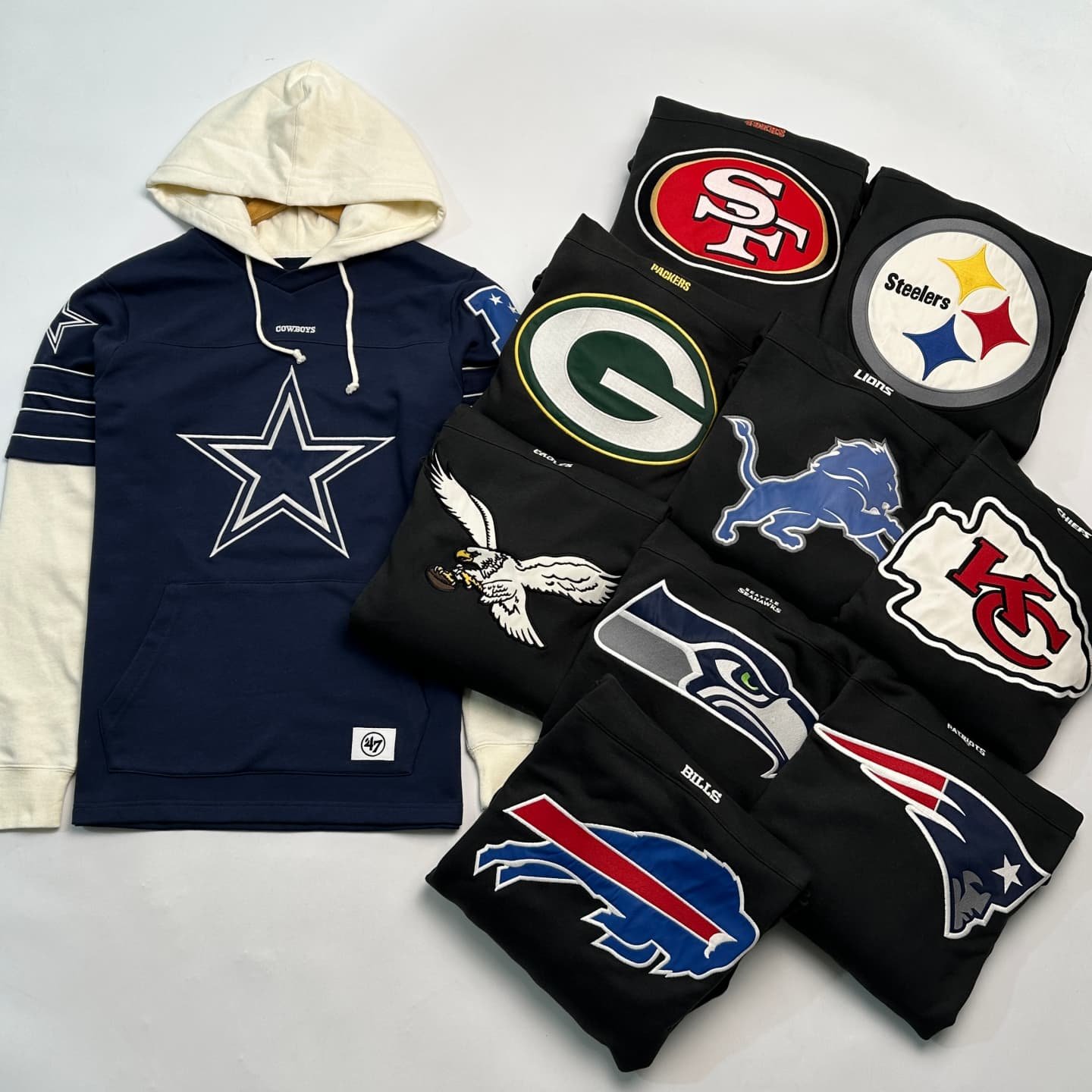 美国NFL版男士毛圈假两件连帽卫衣 万针刺绣LOGO宽松大版休闲上衣