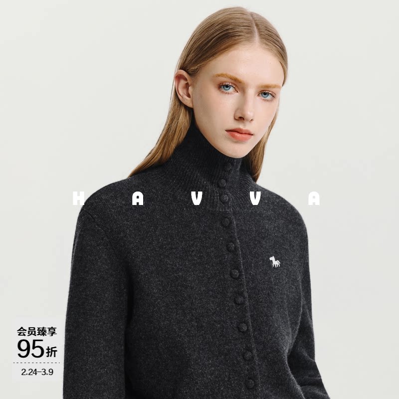 HAVVA翻领修身单排扣针织开衫短款可叠搭女毛衣2025年秋季L3-4612