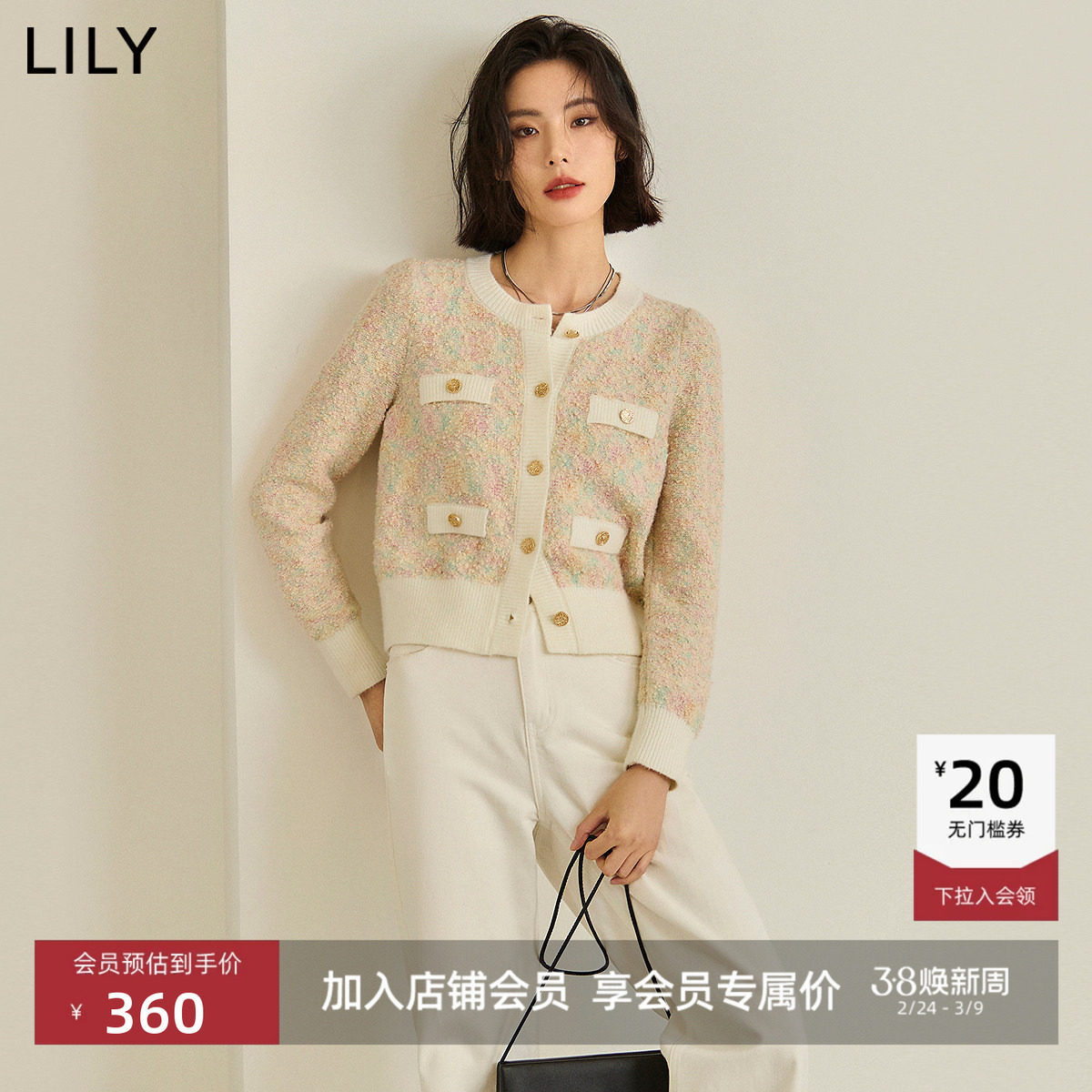 LILY2026春新款复古小香风修身气质通勤圆领针织开衫短外套女短款