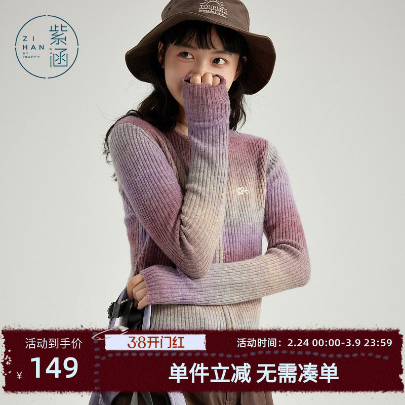 紫涵短款渐变针织开衫女春秋季新款修身显瘦休闲圆领拉链毛衣外套