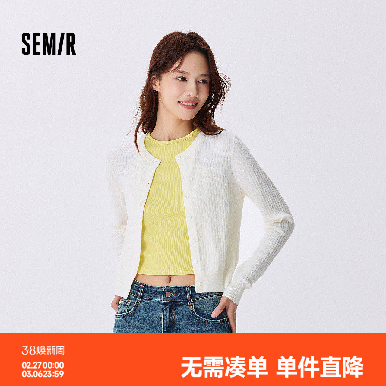 森马针织开衫女短款绞花修身内搭打底休闲秋季简约圆领衣服甜美风