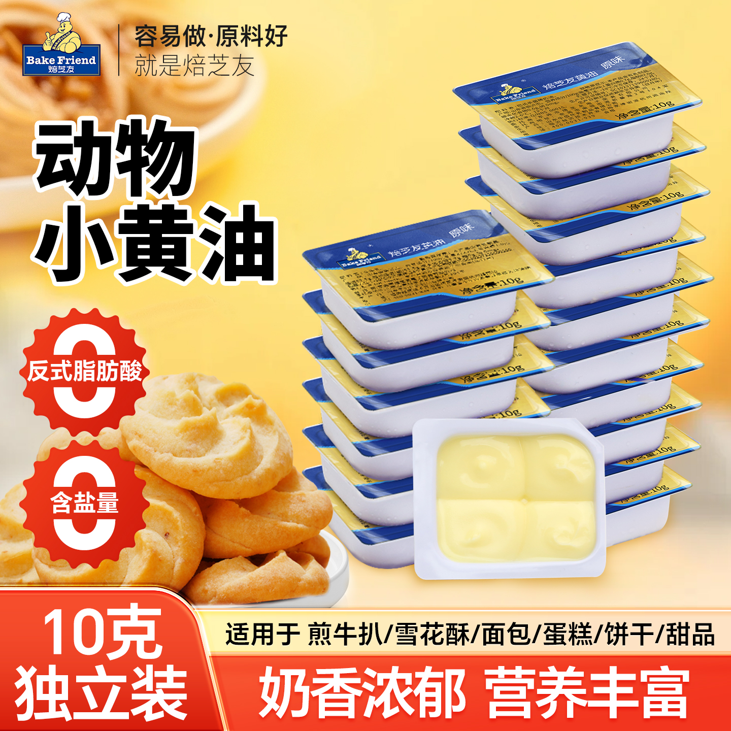 焙芝友食用黄油烘焙家用小包装动物性雪花酥曲奇煎牛排10g*10个