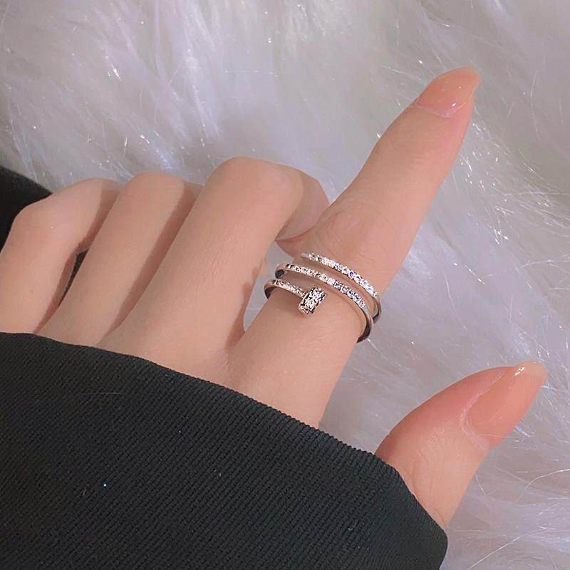 925纯银多层锆石钉子戒指小众设计甜酷辣妹风尾戒食指戒高级感ins