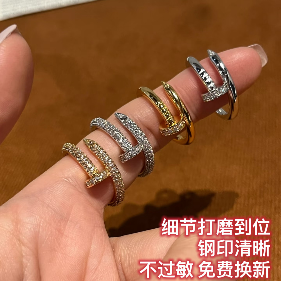 爆款钉子戒指女小众轻奢高级感闪钻精致叠戴指环气质网红简约手饰