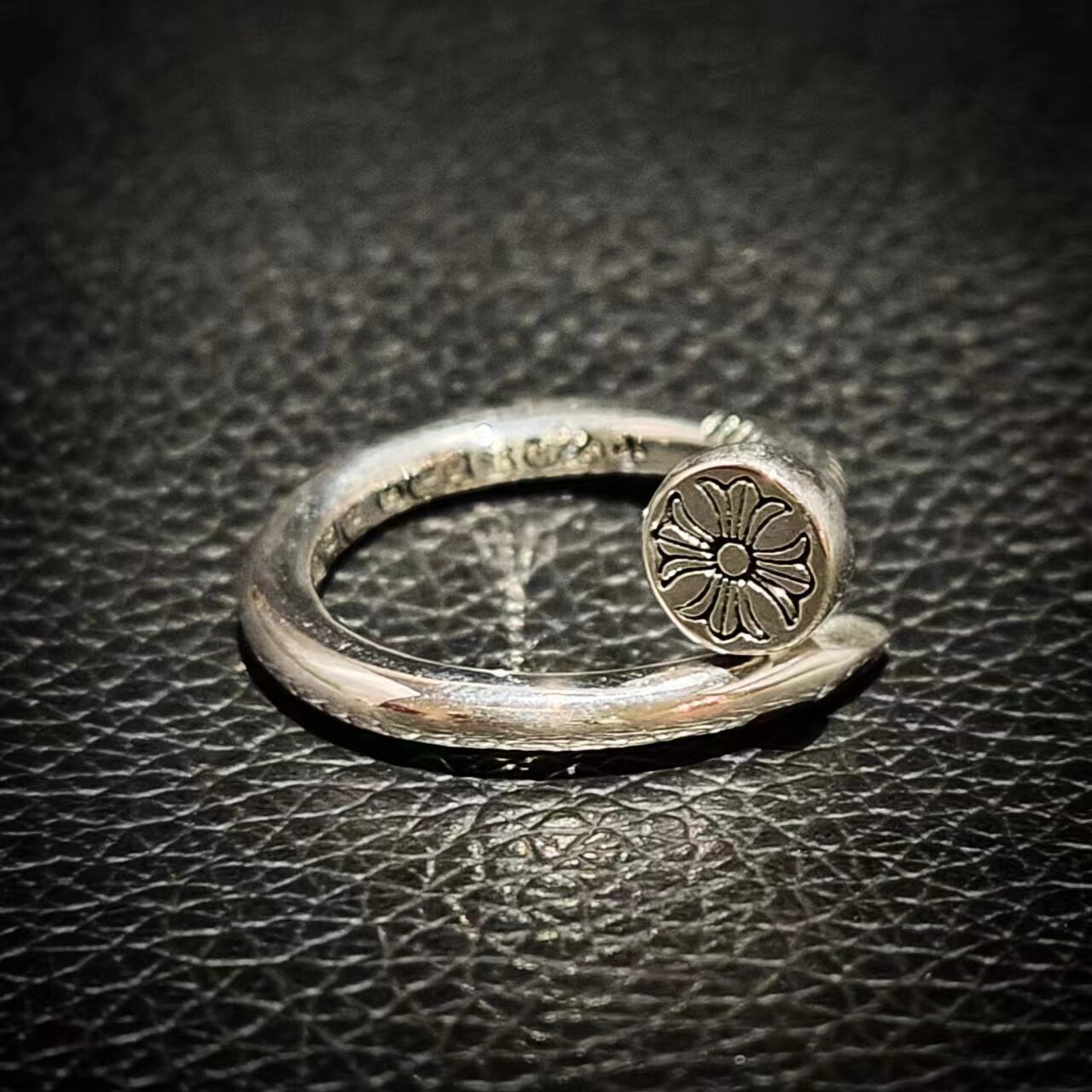 一休老银匠925纯银 圆头钉子戒指 朋克风 摇滚 男女款情侣款指环