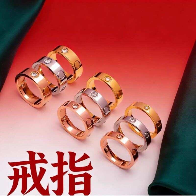 钉子戒指男女18K经典款玫瑰金高版本love满天星情侣对戒指环订婚