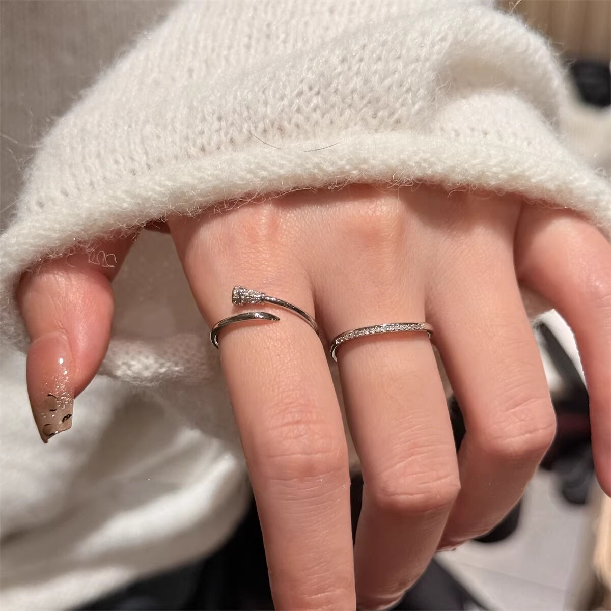 银色钉子锆石戒指女小众设计高级感素圈戒指女时尚尾戒个性食指环