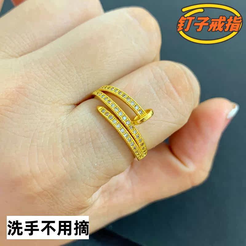 钉子戒指镀18k玫瑰金螺丝钉窄版指环轻奢宽版对戒男女情侣黄金