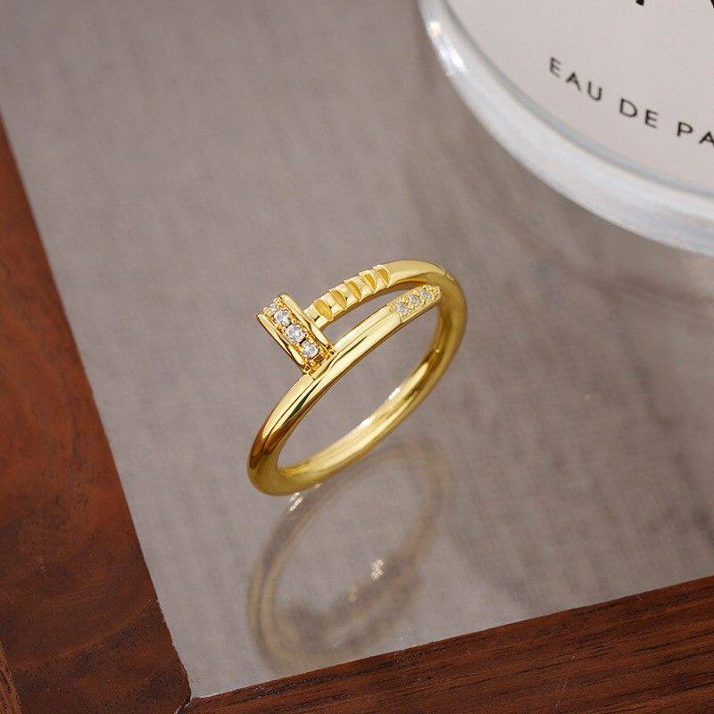 原创无钻钉子戒指女小众设计感高级轻奢食指戒情侣对戒玫瑰金黄金