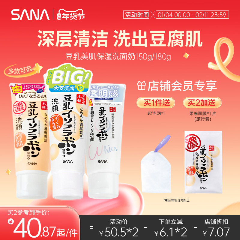 日本SANA莎娜豆乳洗面奶女补水保湿干皮油皮清洁面乳可卸妆正品