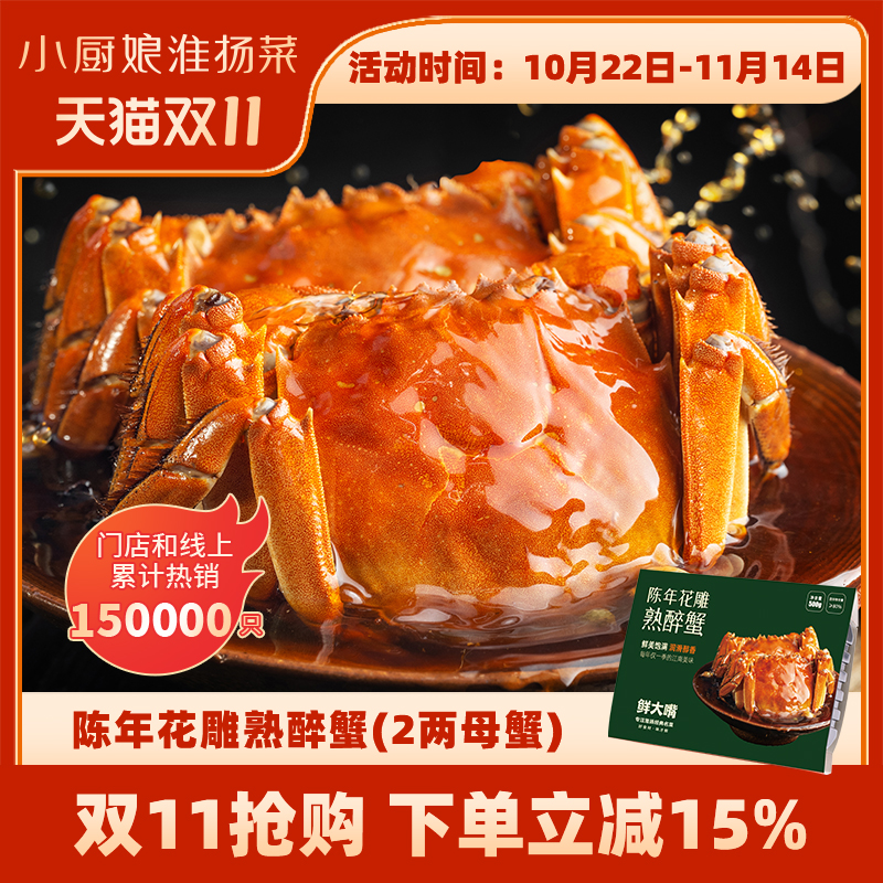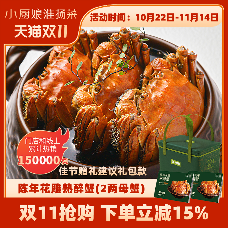 小厨娘花雕熟醉蟹2两母蟹4只即食整只25年新蟹活大闸蟹现做非生腌