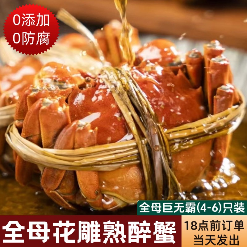 【巨无霸】花雕熟醉蟹4-3.5两6只全母即食螃蟹熟食大闸蟹非香辣