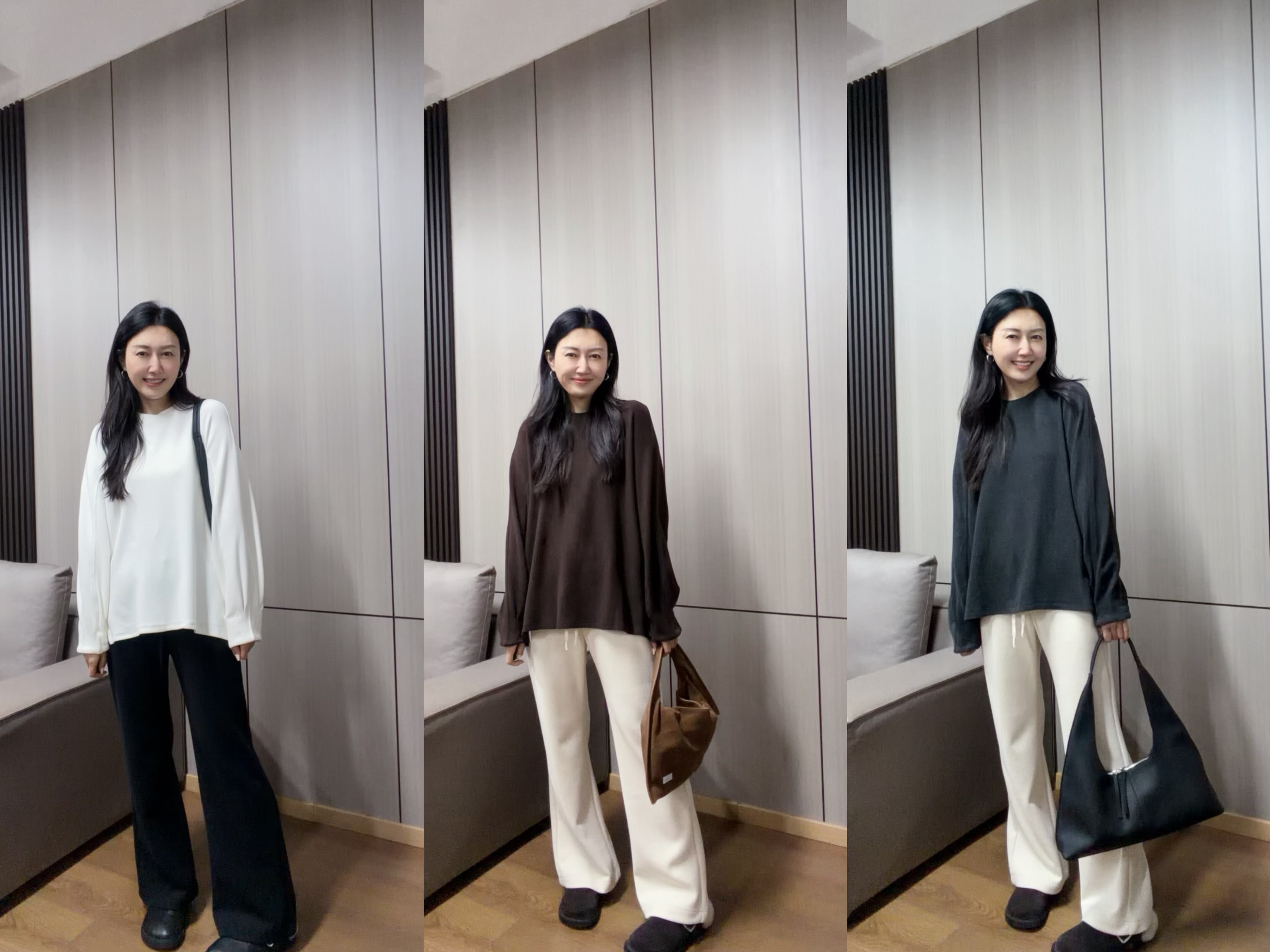 吴童童开叉圆领长袖卫衣女秋冬韩系慵懒宽松显瘦套头上衣长裤套装