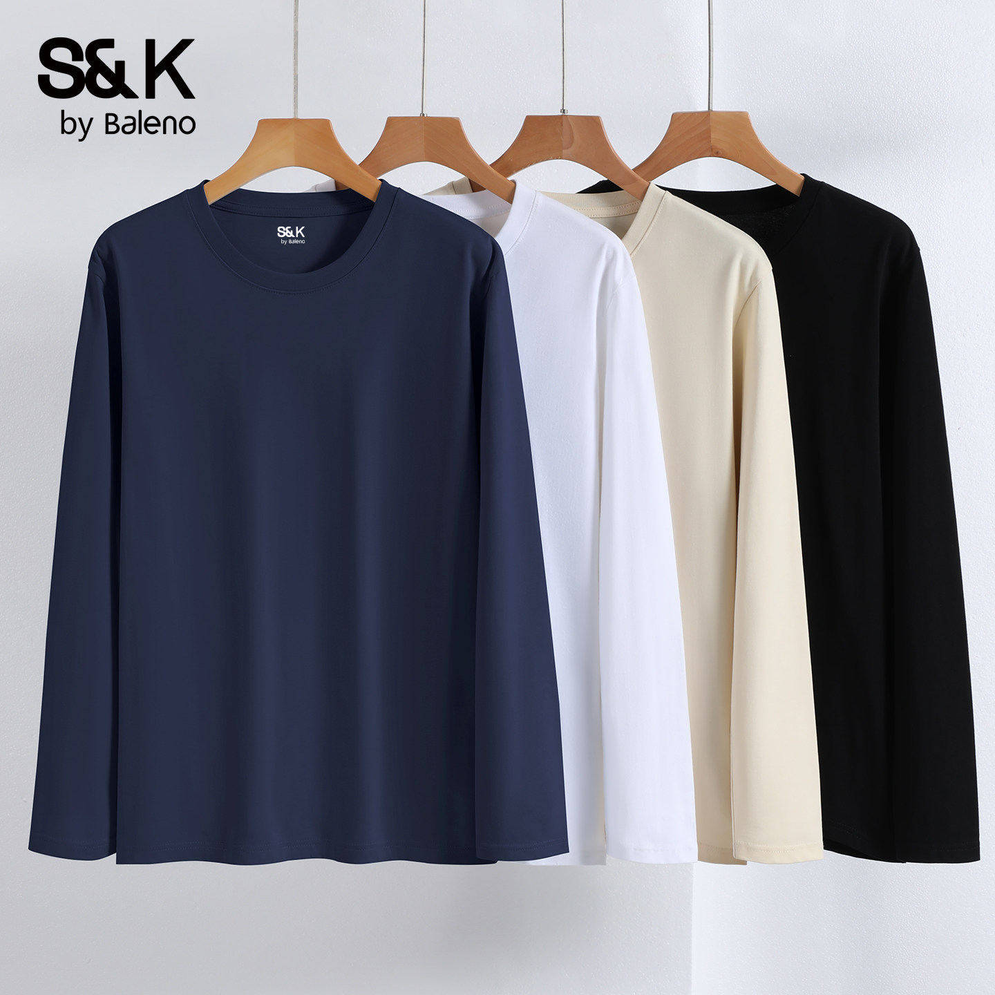 班尼路S&K纯棉长袖t恤男士春秋季基础款百搭打底衫男宽松上衣服A