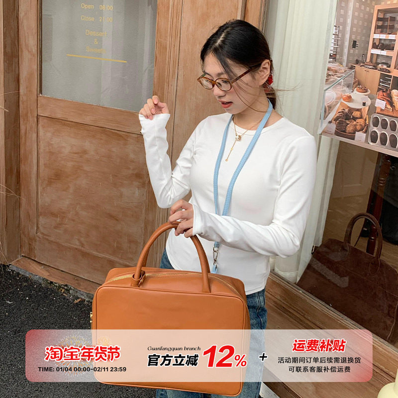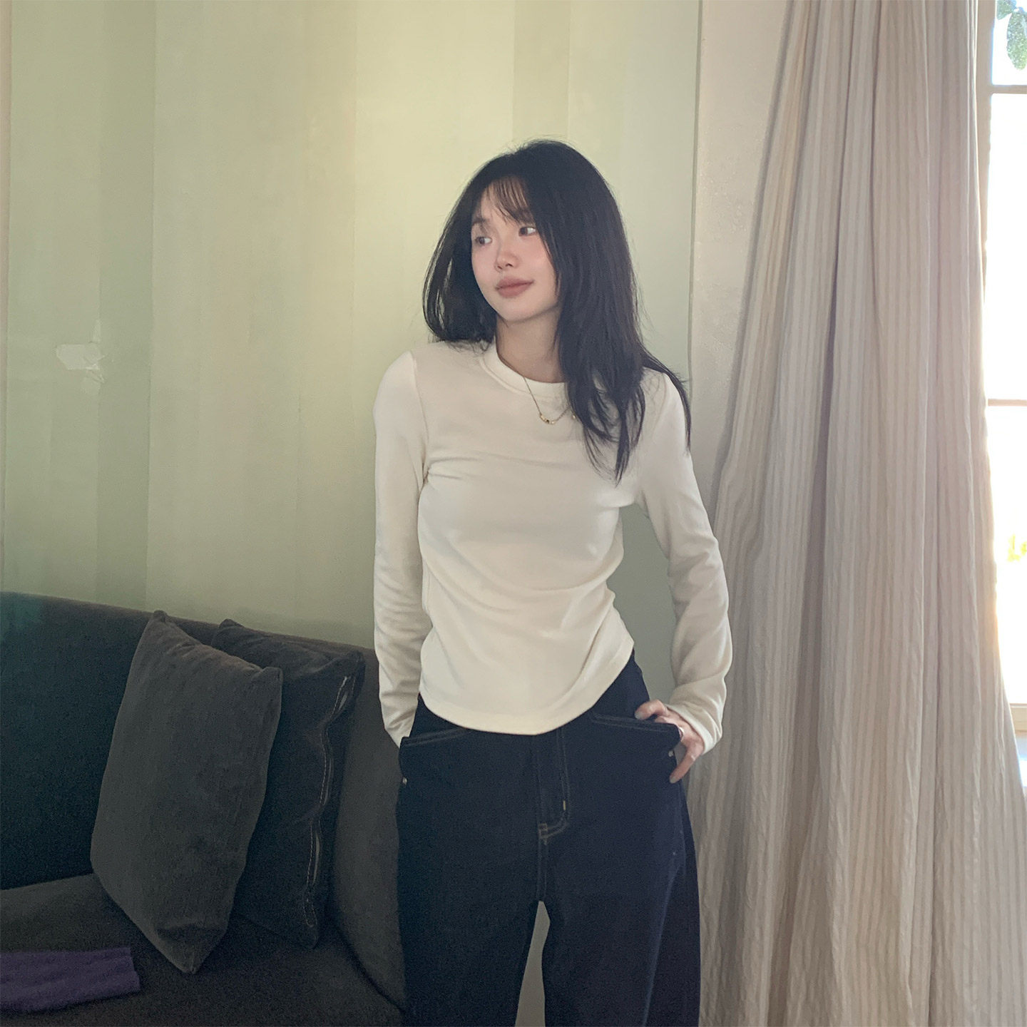 橘子树在哪儿韩系纯色圆领长袖t恤女秋季简约显瘦百搭打底衫上衣