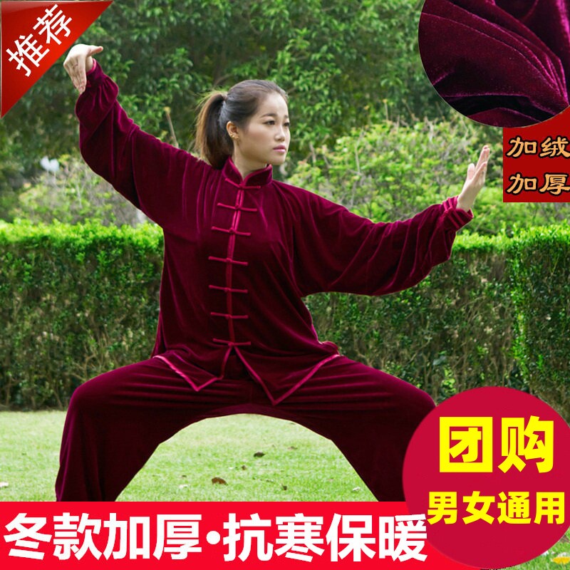 金丝绒太极服女新款秋冬加厚太极拳练功服男士冬季加绒武术服套装