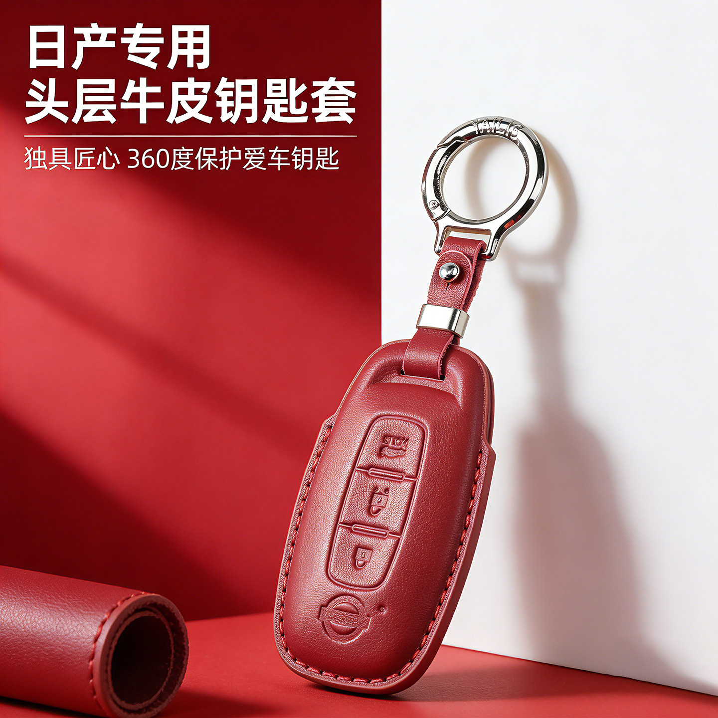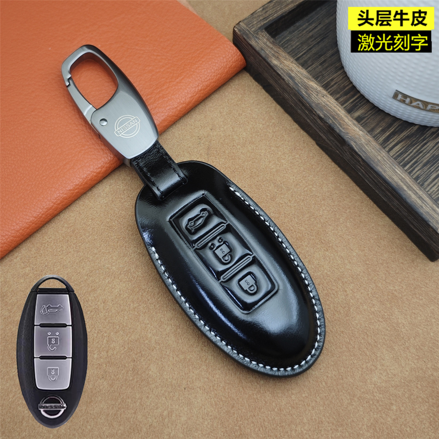 真皮日产车钥匙套14代经典轩逸蓝鸟尼桑包天籁扣奇骏壳劲逍客途乐