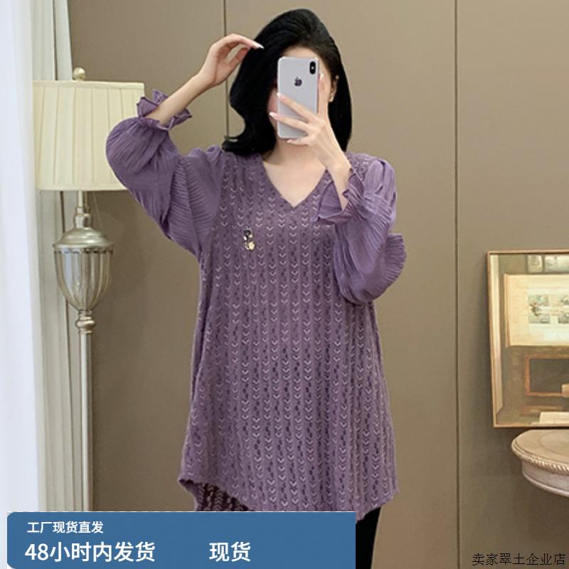 大码女装2025新款秋冬内搭打底衫中长款v领蕾丝衫百搭显瘦上衣潮