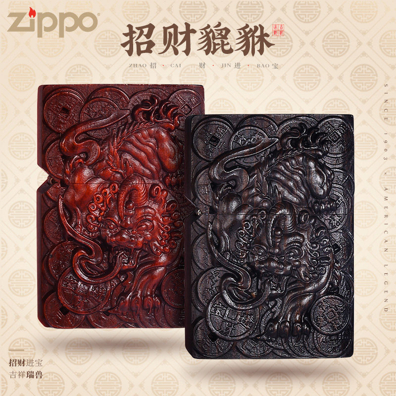 zippo打火机正品紫檀木套壳招财貔貅芝宝煤油防风火机高档送男友