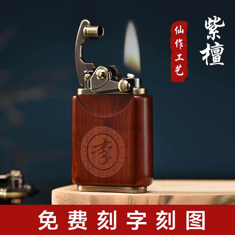 高档紫檀木打火机改装煤油防风复古个性创意送男友礼物高颜值定制