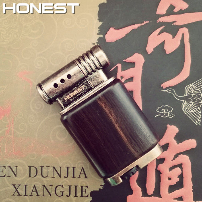 HONEST百诚新品充气打火机复古紫檀木金属明火烟斗点烟器高档礼物