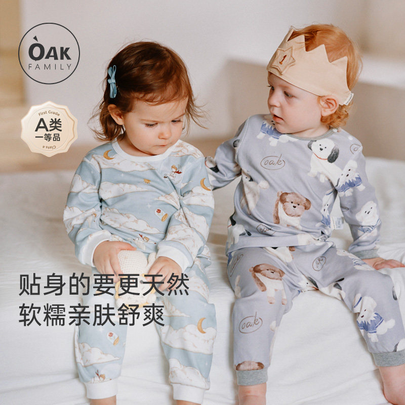 Oak Family春秋新款男女宝宝长袖居家服空调房儿童亲子睡衣套装