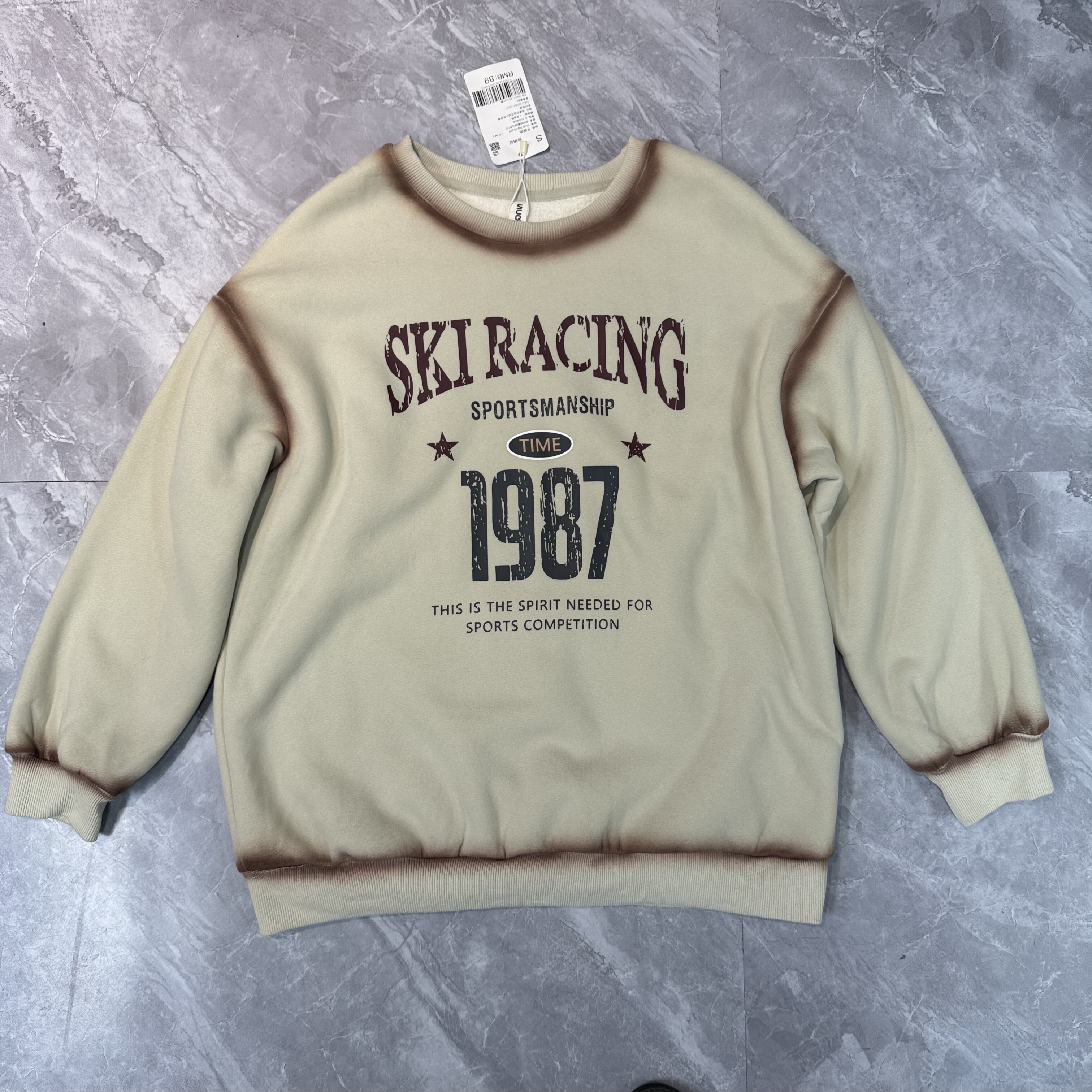 韩风chic复古时髦字母圆领套头卫衣女加绒加厚宽松慵懒风外套冬季