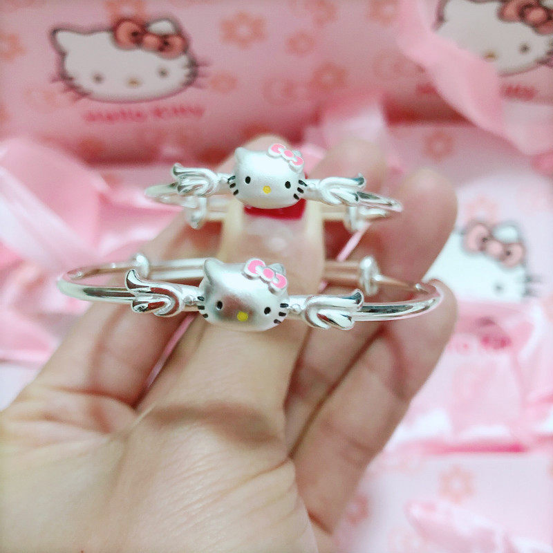 正生天使kt猫女宝宝纯银亲子款手镯足银999小孩儿童成人款银镯子