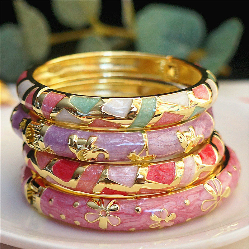 包邮新式景泰蓝儿童手镯宝宝KT猫卡通镯子滴釉首饰小礼品送宝宝