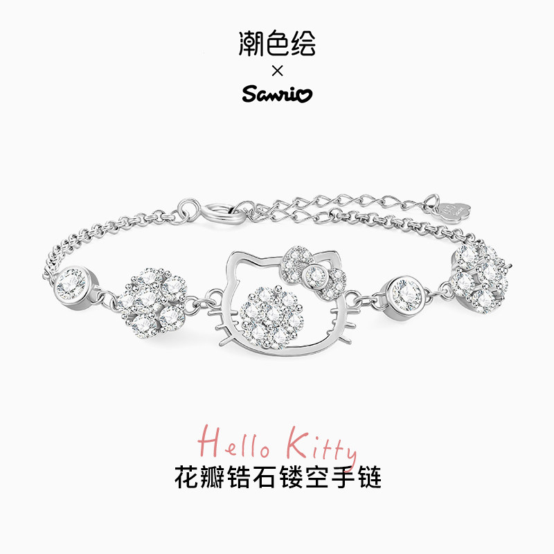 潮色绘x三丽鸥纯银手链女生款凯蒂猫手镯哈喽kt猫有质感毕业礼物