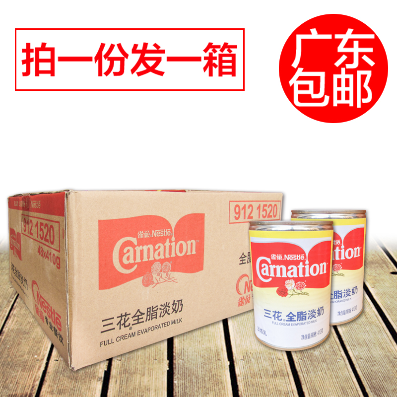 雀巢三花全脂淡奶410g*48罐 三花全脂淡炼乳咖啡奶茶甜品原料包邮