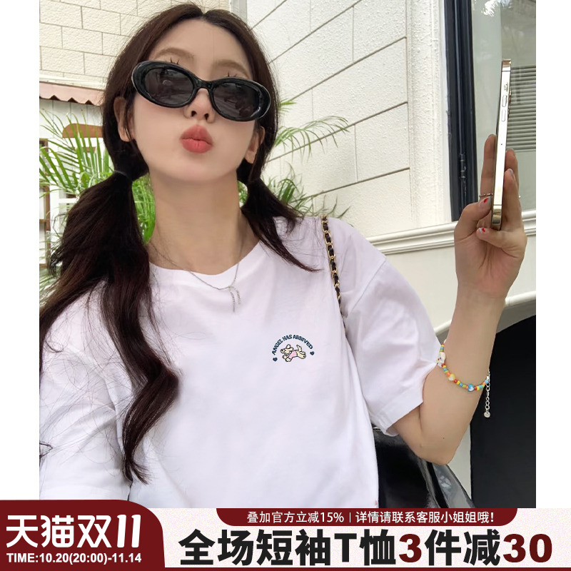 one more白色短袖t恤女夏季2025新款纯棉半袖女士正肩巨好看上衣Y