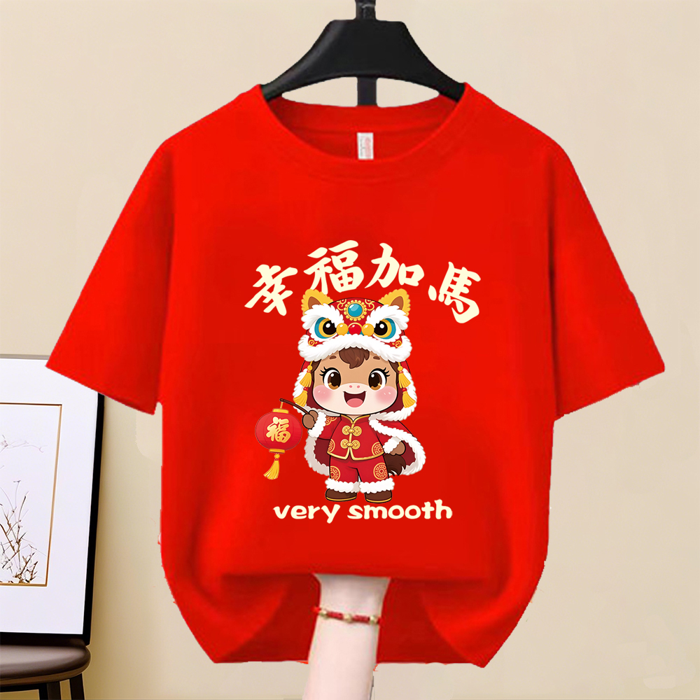 2026马年本命年衣服青少年短袖t恤男过年拜年新年属马纯棉半袖女