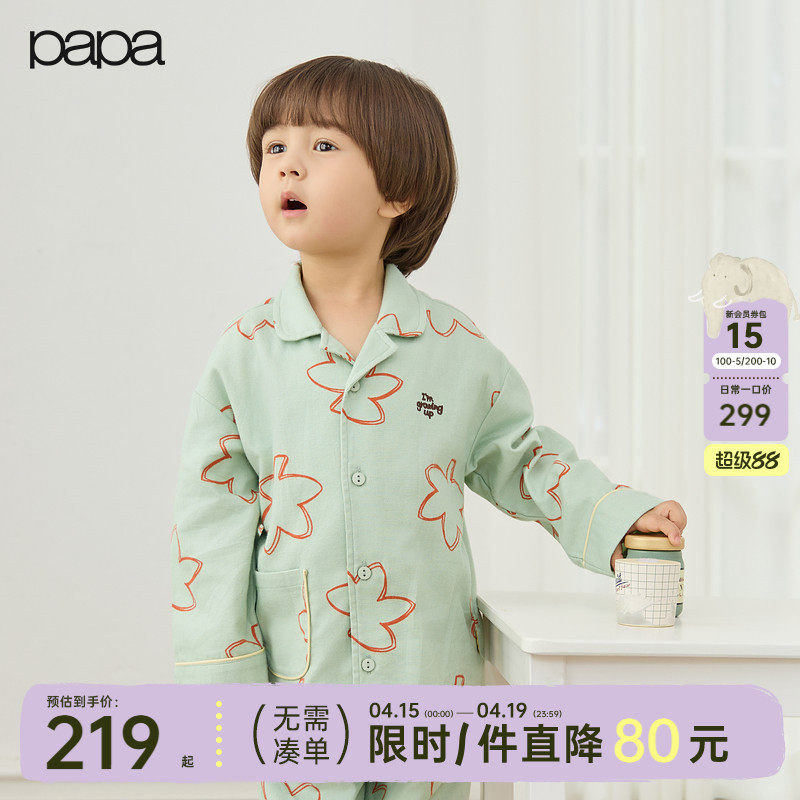 【新品】papa爬爬秋季儿童家居服套装男女童抗皱法兰绒磨毛睡衣
