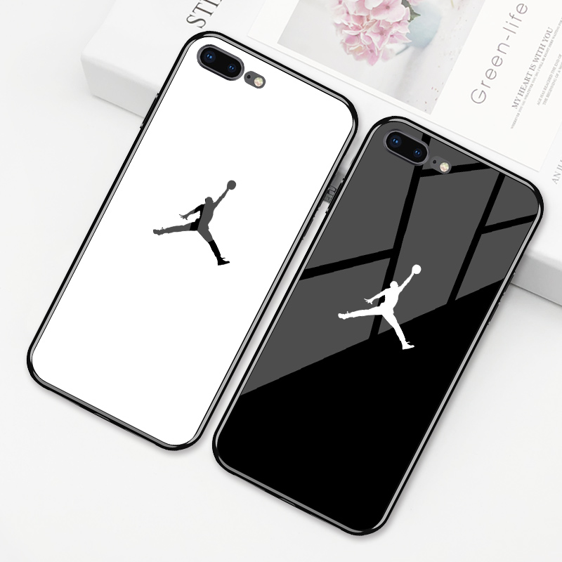 适用苹果7plus钢化玻璃手机壳简约iphone8s个性NBA篮球12飞人xsmax保护套七八硅胶网红6全包防摔XR黑白潮男款