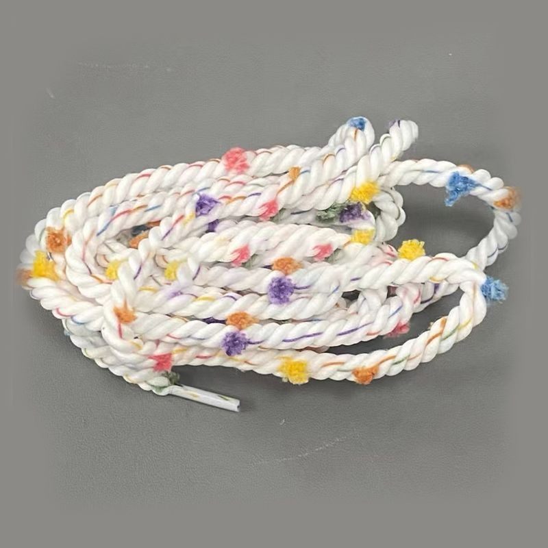 棉花糖麦穗鞋带男女款板鞋帆布鞋扁平宽彩色黑白色辫子麻绳棉鞋绳