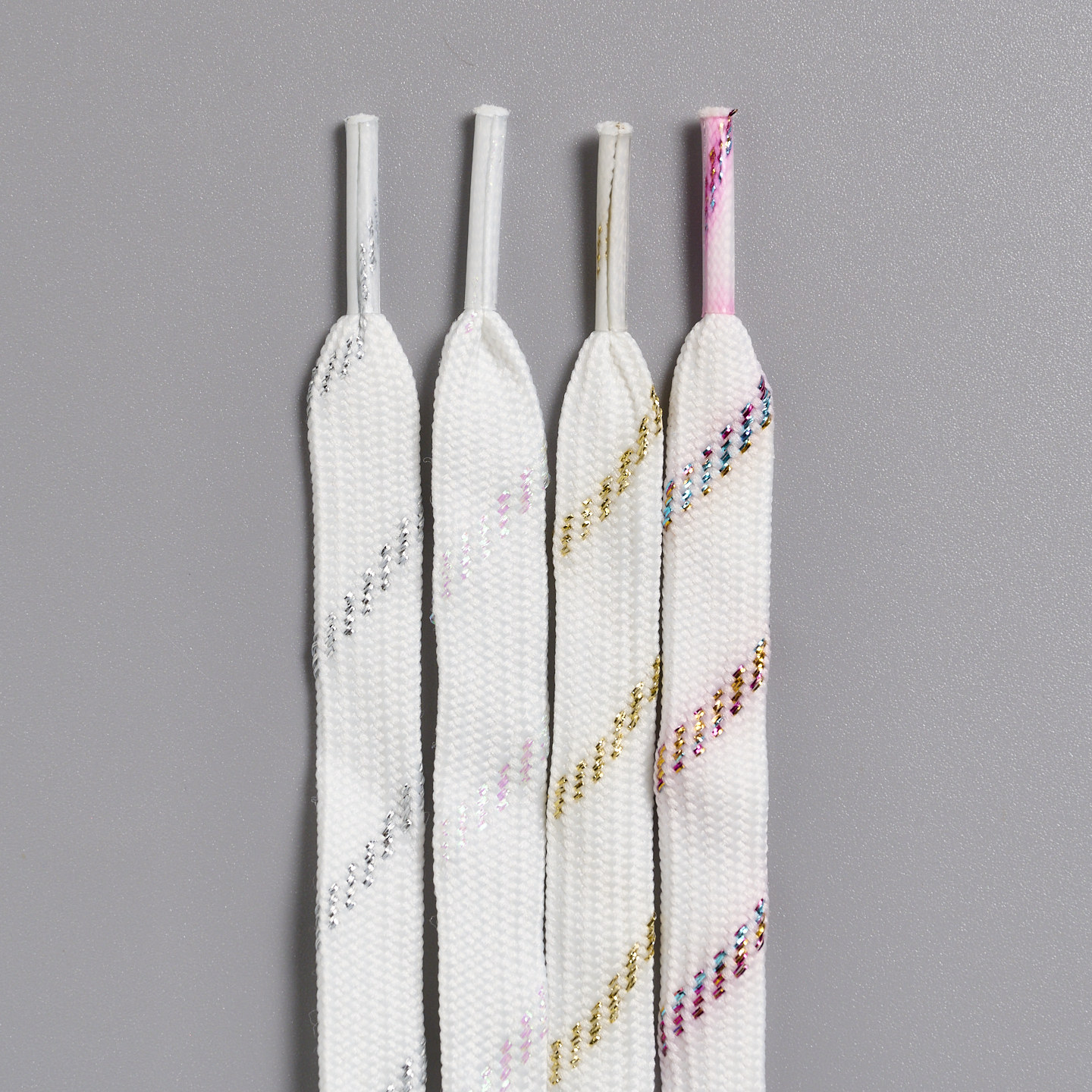 白色双层鞋带银金色彩色亮丝线斜点板鞋帆布鞋小白鞋休闲运动鞋带