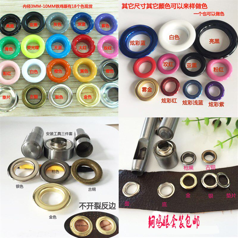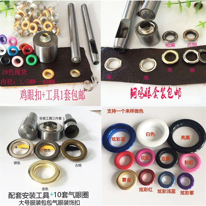 鸡眼扣气眼铆钉彩色鸡眼扣喷漆空心铆钉鞋带眼帆布扣安装工具套装