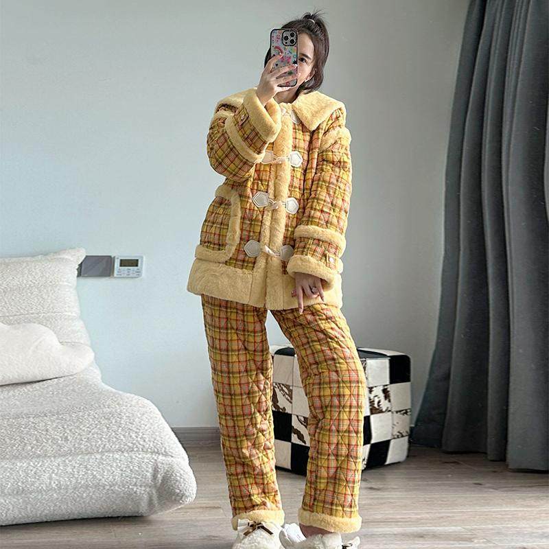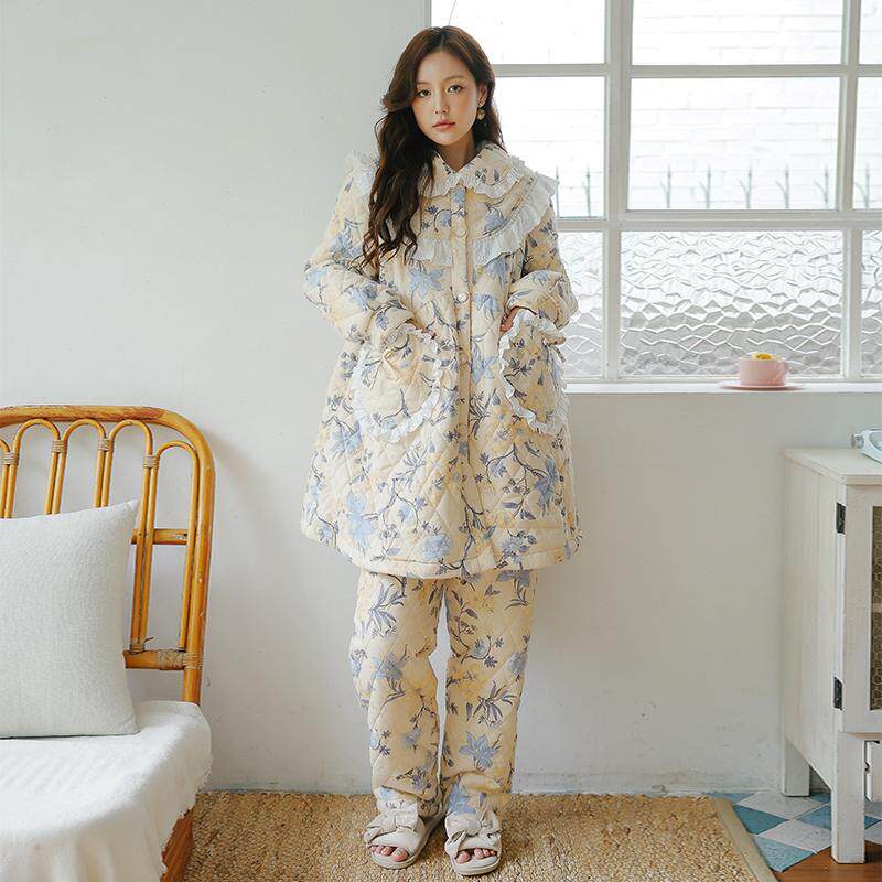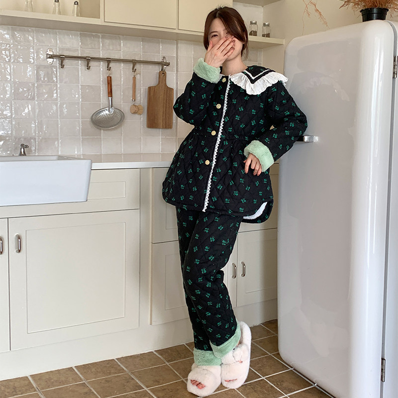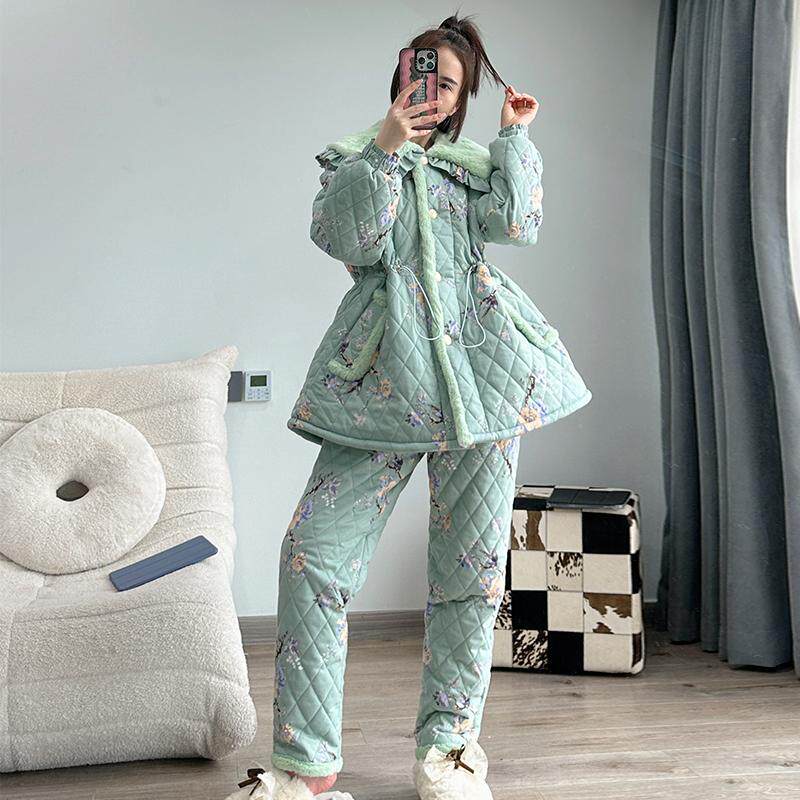 - 睡衣加厚女冬三层夹棉