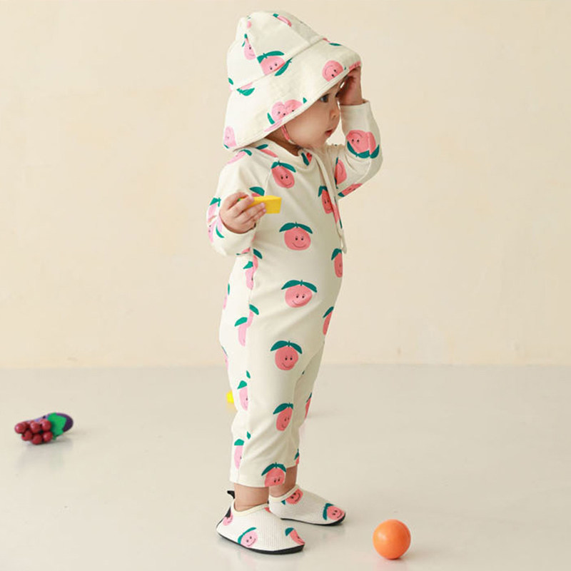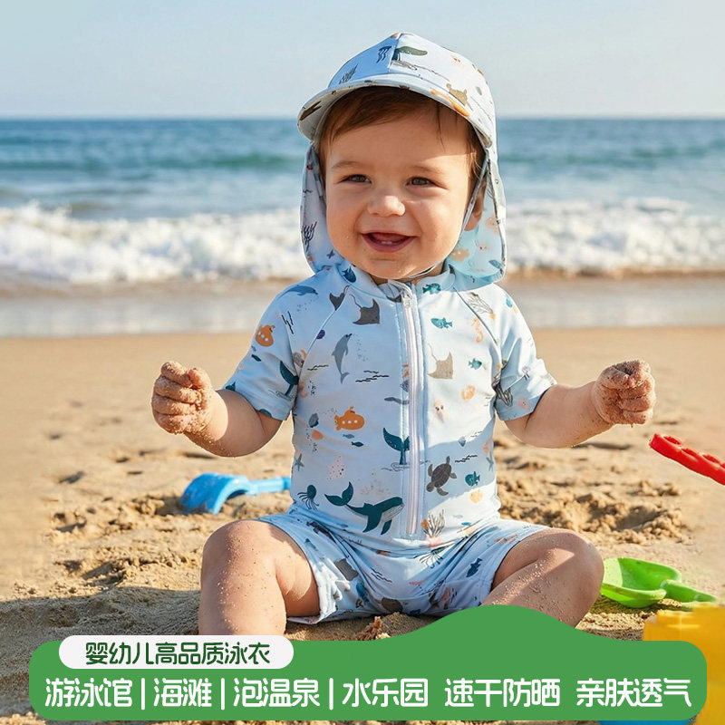 a类婴幼儿泳衣小月龄连体游泳裤防晒速干沙滩服男女宝宝泳帽套装