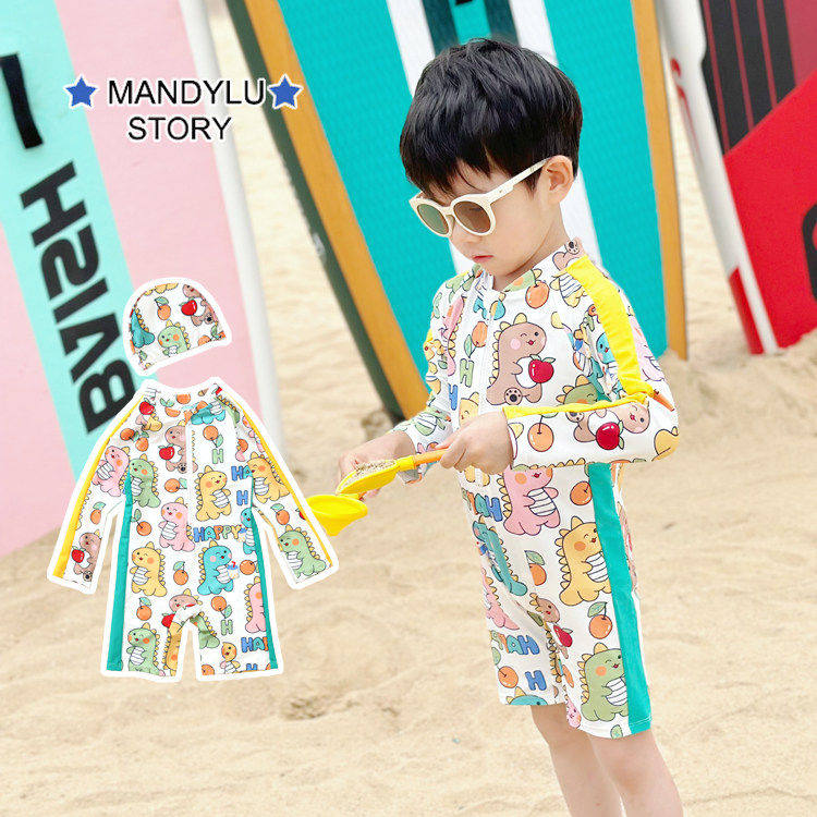 儿童连体泳衣宝宝中性婴幼儿可爱学生卡通长袖防晒潜水服温泉泳装