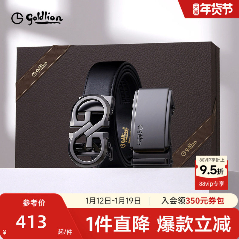 金利来皮带男士自动扣新款腰带礼盒真皮裤带内扣款天地扣上螺丝款